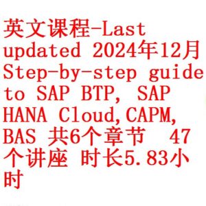 英文课程-Last updated 2024年12月Step-by-step guide to SAP BTP, SAP HANA Cloud,CAPM, BAS 共6个章节 • 47个讲座 时长5.83小时 带英文字幕