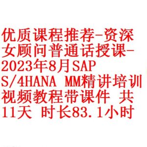优质课程推荐-资深女顾问普通话授课-2023年8月SAP S/4HANA MM精讲培训视频教程 带课件 共11天 时长83.1小时