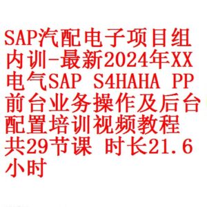 SAP汽配电子项目组内训-最新2024年XX电气SAP S/4HAHA PP前台业务操作及后台配置培训视频教程 共29节课 时长21.6小时