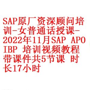 SAP原厂资深顾问培训-女普通话授课-2022年11月SAP APO IBP 培训视频教程带课件 共5节课 时长17小时