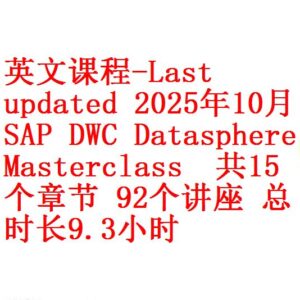 英文课程-Last updated 2025年10月SAP DWC Datasphere Masterclass 共15个章节 92个讲座 总时长9.3小时