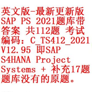 英文版-最新更新版SAP PS 2021题库带答案 共112题 考试编码:C_TS412_2021 V12.95 即SAP S4HANA Project Systems+ 同时补充题库没有的17题原题