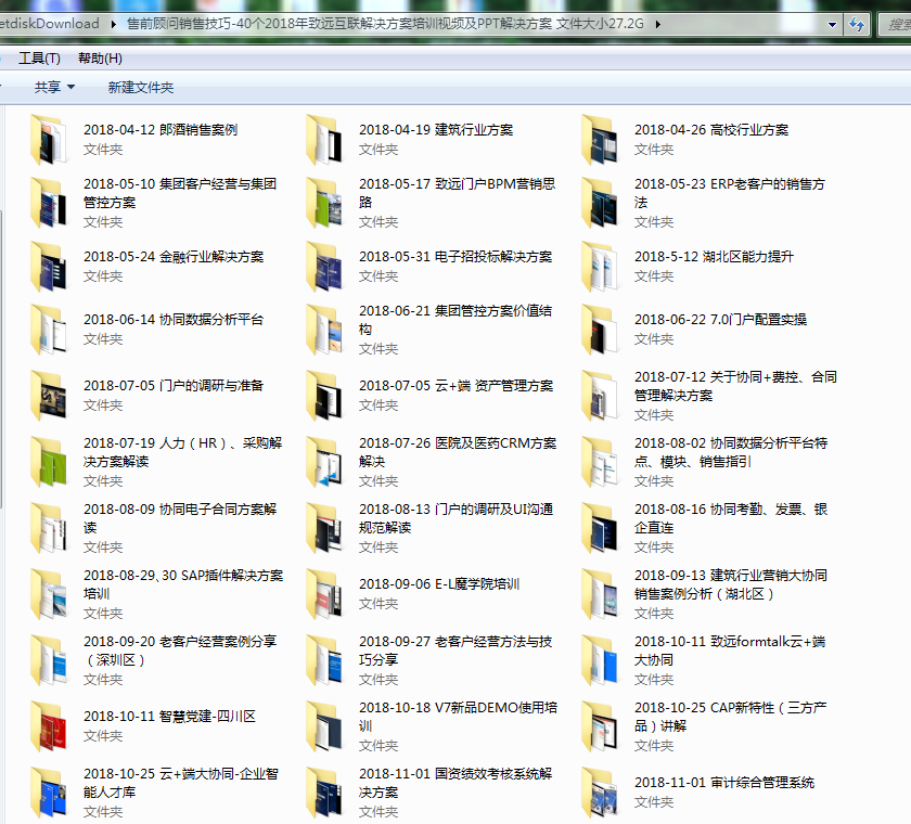 售前顾问销售技巧-40个2018年致远互联解决方案培训视频及PPT解决方案 文件大小27.2G.