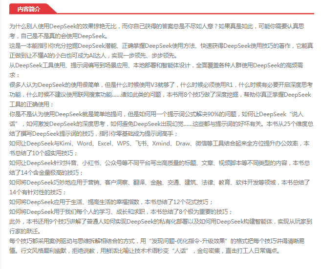 中文版-DeepSeek使用秘笈_从入门到精通的100个实用技巧 共316页 2025年编著 PDF和原版EPUB