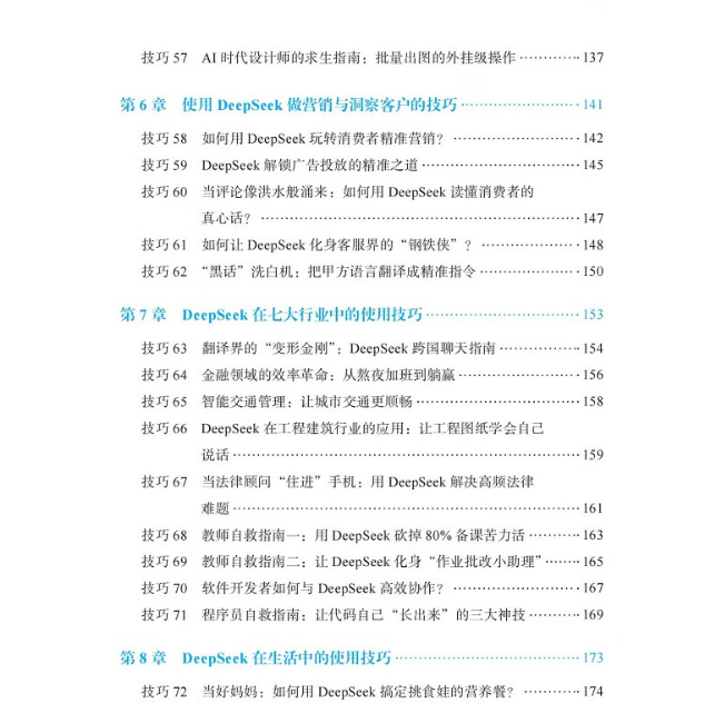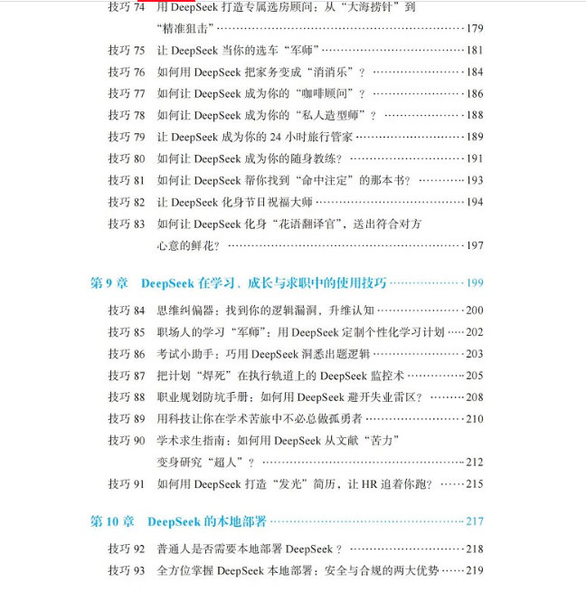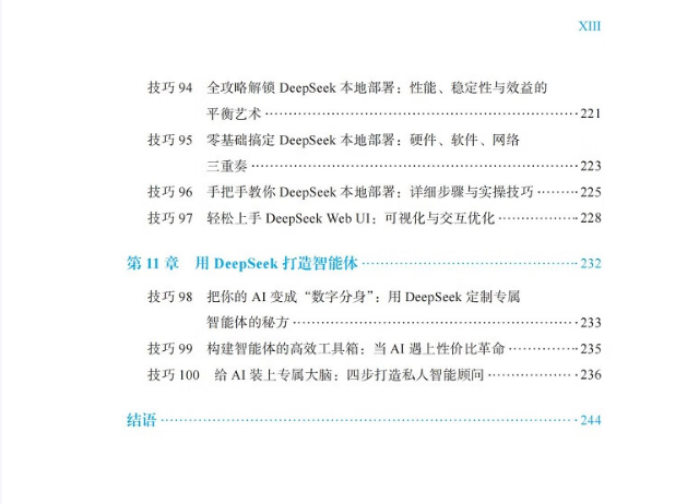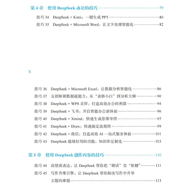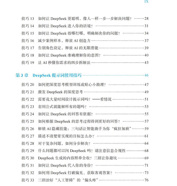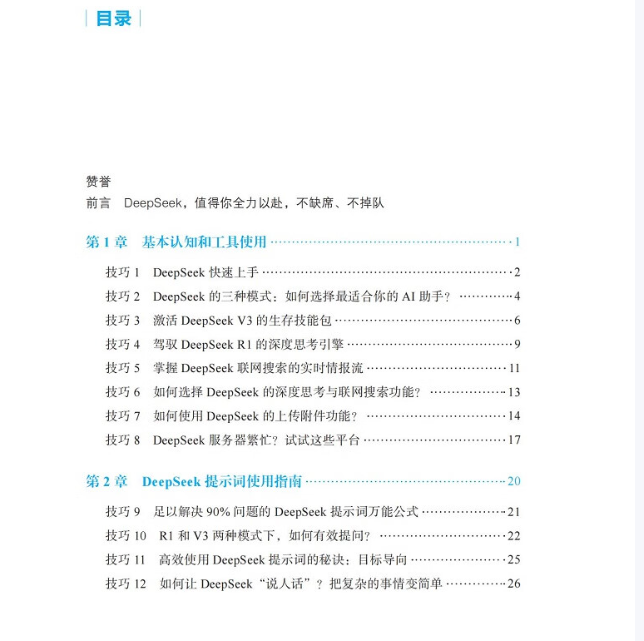 中文版-DeepSeek使用秘笈_从入门到精通的100个实用技巧 共316页 2025年编著 PDF和原版EPUB目录截图如下: