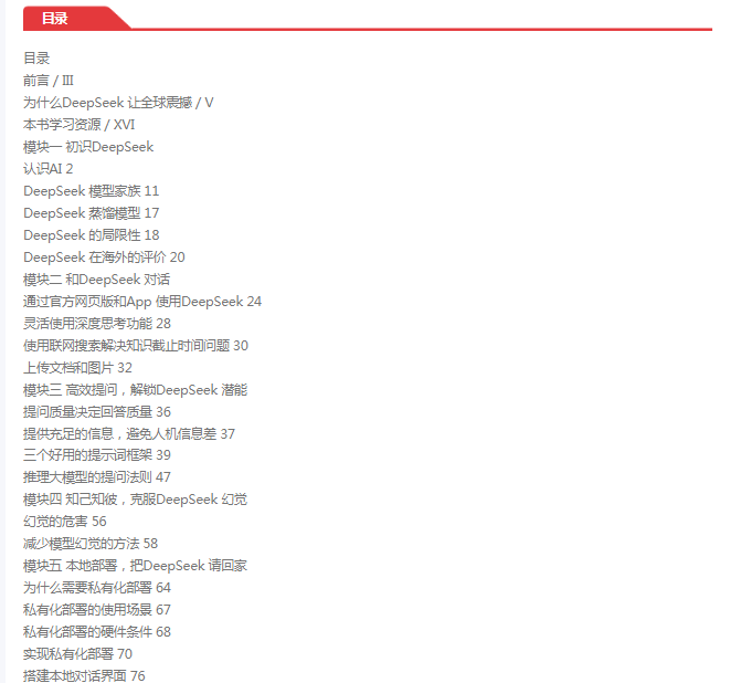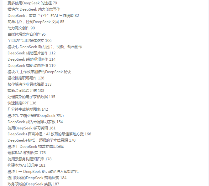 中文版-成为AI高手从DeepSeek开启高效能 共237页 2025年编著 PDF和原版EPUB目录截图如下: