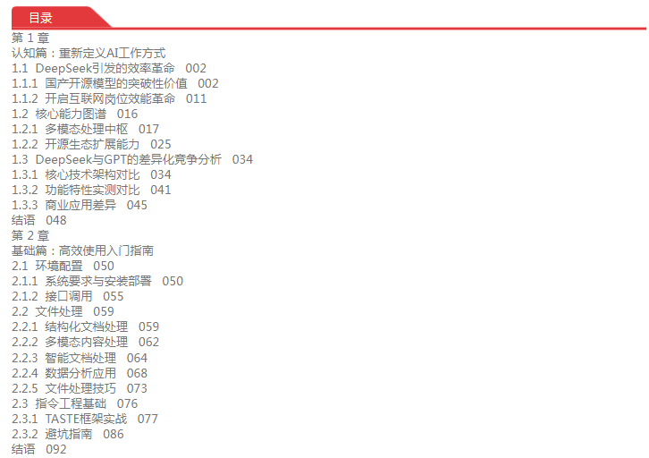 中文版-DeepSeek应用高级教程产品经理+研发+运营+数据分析 共583页 2025年编著 PDF和原版EPUB目录截图如下: