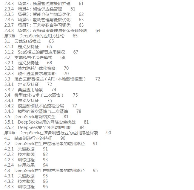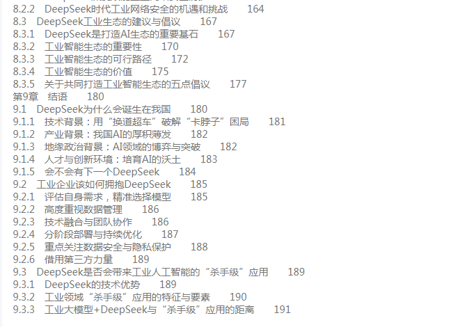 中文版-DeepSeek驱动工业智能技术架构、应用路径与实践创新 共211页 2025年编著 PDF和原版EPUB目录截图如下: