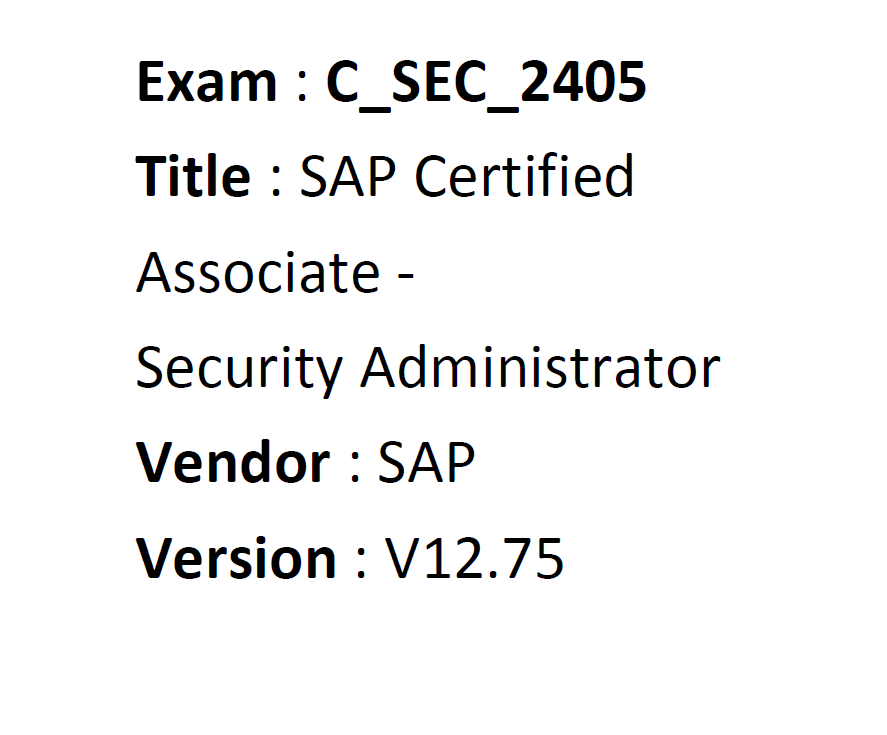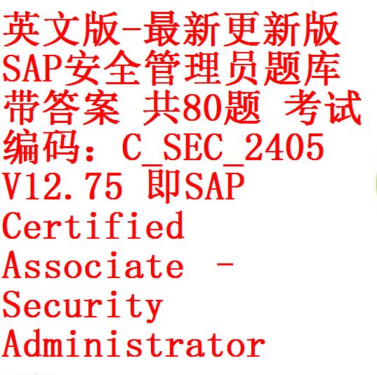 英文版-最新更新版SAP安全管理员题库带答案 共80题 考试编码:C_SEC_2405 V12.75 即SAP Certified Associate – Security Administrator.