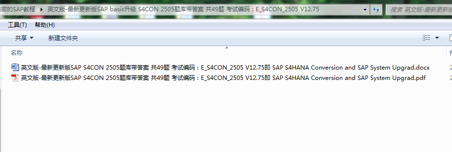 英文版-最新更新版SAP S4CON 2505题库带答案 共49题 考试编码:E_S4CON_2505 V12.75即 SAP S4HANA Conversion and SAP System Upgrad