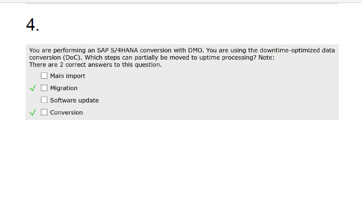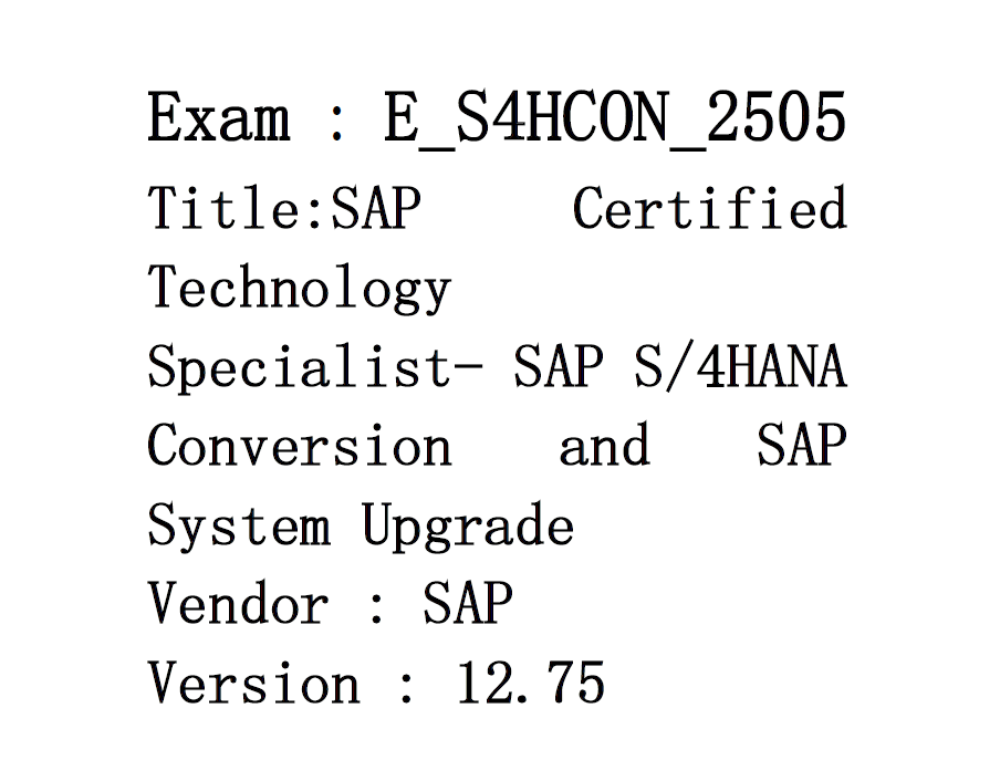 英文版-最新更新版SAP S4CON 2505题库带答案 共49题 考试编码:E_S4CON_2505 V12.75即 SAP S4HANA Conversion and SAP System Upgrad题库的试看截图如下: