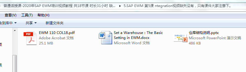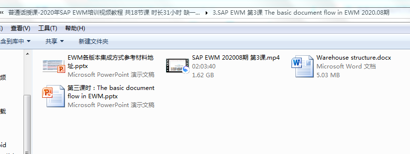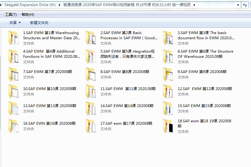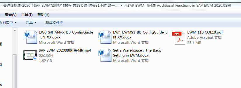 普通话授课-2020年SAP EWM培训视频教程 共18节课 时长31小时 缺少其中一课视频。对于第五节视频缺失介意的慎下单。