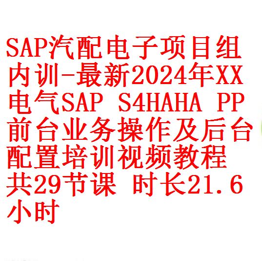 SAP汽配电子项目组内训-最新2024年XX电气SAP S4HAHA PP前台业务操作及后台配置培训视频教程 共29节课 时长21.6小时,文件大小11.2G.