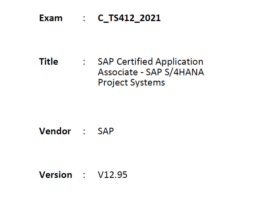 英文版-最新更新版SAP PS 2021题库带答案 共112题 考试编码:C_TS412_2021 V12.95 即SAP S4HANA Project Systems题库试看截图如下: