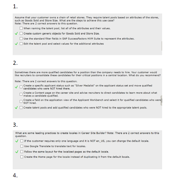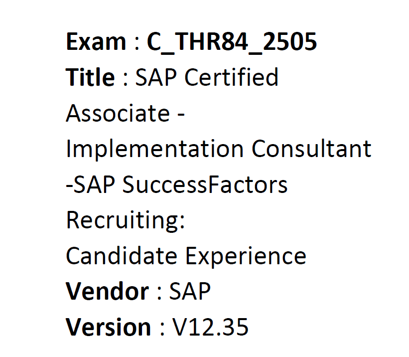 英文版-最新SAP THR84 2505题库带答案共80题 考试编码:C_THR84_2505 V12.35 即Implementation Consultant – SAP SuccessFactors Recruiting Candidate Experience试看题库截图如下: