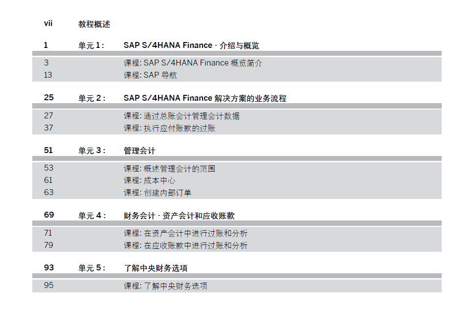 中文版-SAP S4FICO模块官方标准教材-S4F00_ZH 即SAP S/4HANA 的财务概览 共108页 2022年编著 PDF版截图如下: