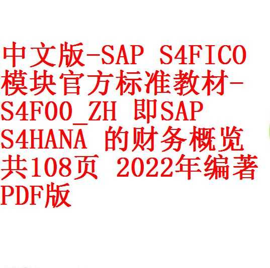 中文版-SAP S4FICO模块官方标准教材-S4F00_ZH 即SAP S4HANA 的财务概览 共108页 2022年编著 PDF版