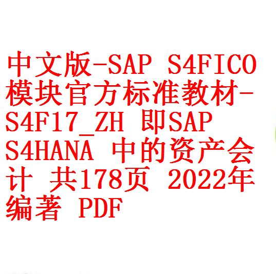 中文版-SAP S4FICO模块官方标准教材-S4F17_ZH 即SAP S/4HANA 中的资产会计 共178页 2022年编著 PDF版截图如下: