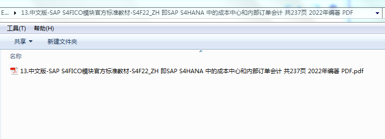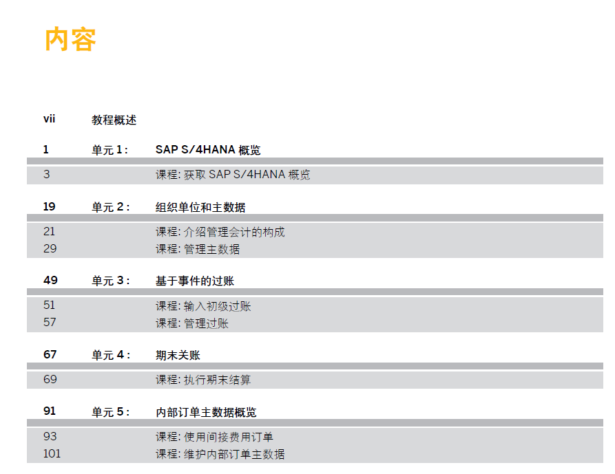 中文版-SAP S4FICO模块官方标准教材-S4F22_ZH 即SAP S/4HANA 中的成本中心和内部订单会计 共237页 2022年编著 PDF版截图如下: