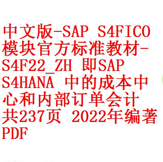 中文版-SAP S4FICO模块官方标准教材-S4F22_ZH 即SAP S/4HANA 中的成本中心和内部订单会计 共237页 2022年编著 PDF版.