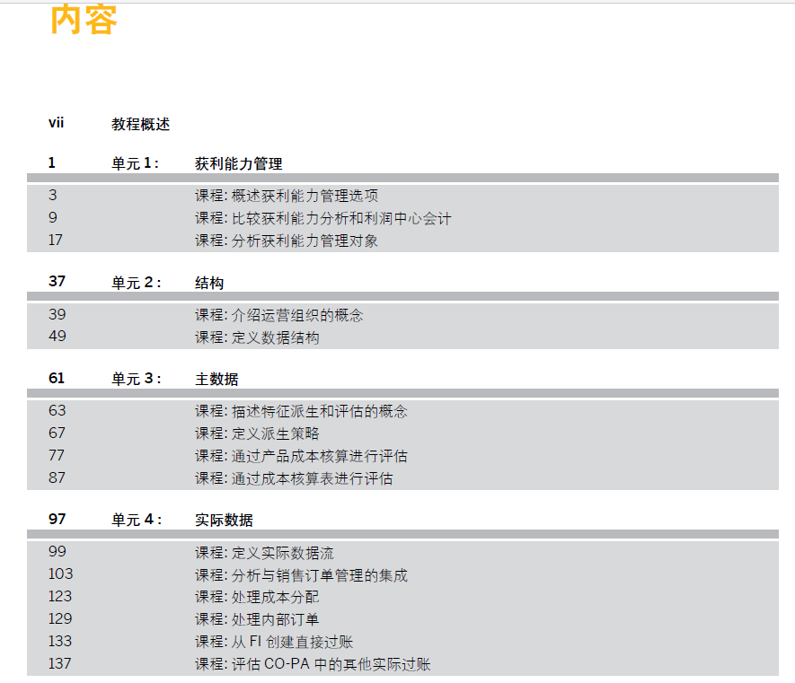 中文版-SAP S4FICO模块官方标准教材-S4F29_ZH 即在 SAP S4HANA 中进行获利能力分析 共251页 2022年编著 PDF版.