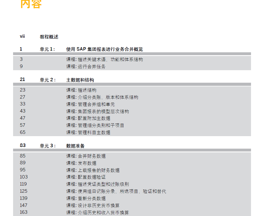 中文版-SAP S4FICO模块官方标准教材-S4F95_ZH 即实施面向集团报表的 SAP S4HANA Finance 共274页 2022年编著 PDF版截图如下: