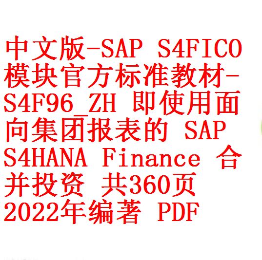 中文版-SAP S4FICO模块官方标准教材-S4F96_ZH 即使用面向集团报表的 SAP S4HANA Finance 合并投资 共360页 2022年编著 PDF版截图如下: