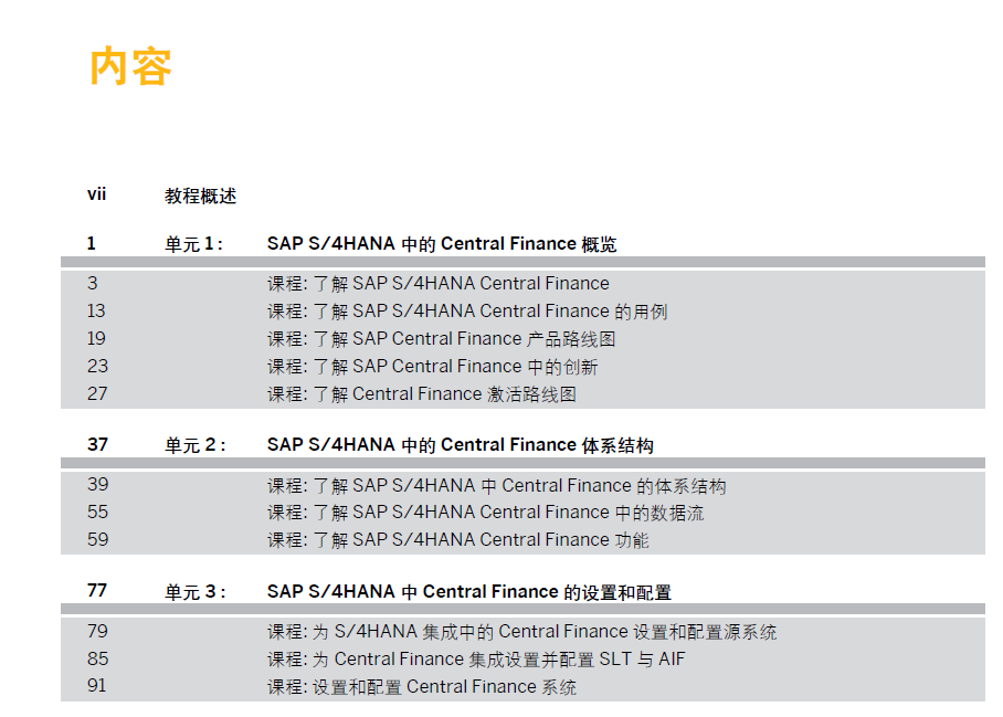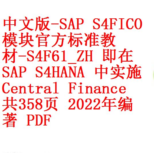 中文版-SAP S4FICO模块官方标准教材-S4F61_ZH 即在 SAP S/4HANA 中实施 Central Finance 共358页 2022年编著 PDF.