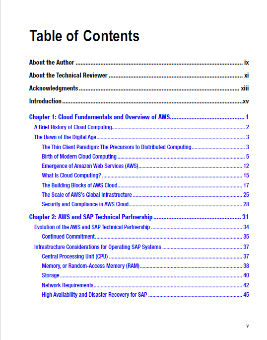 英文版- Apress-Modernizing SAP with AWS_A Comprehensive Journey to Cloud Migration, Architecture, and Innovation Strategies共312页 2025年编著 原版PDF目录截图如下: