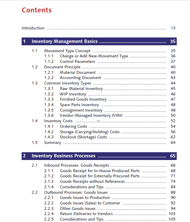 英文版-SAP Press-Inventory Management and Optimization in SAP ERP 共528页 2016年编著 原版PDF目录截图如下: