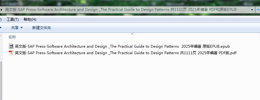 英文版-SAP Press-Software Architecture and Design _The Practical Guide to Design Patterns 共1111页 2025年编著 PDF和原版EPUB目录截图如下: