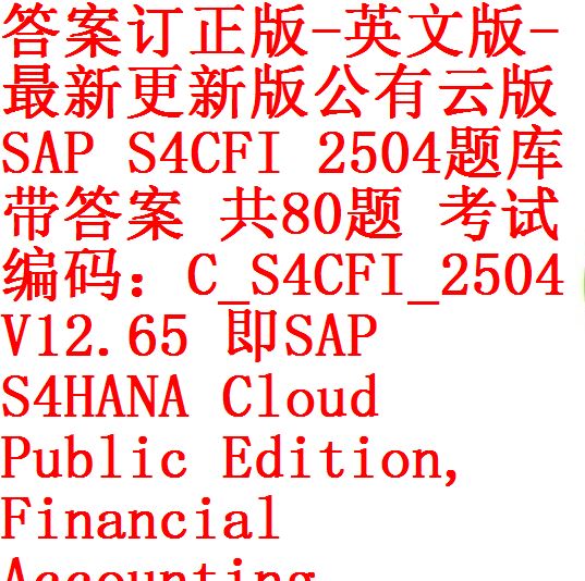 答案订正版-英文版-最新更新版公有云版SAP S4CFI 2504题库带答案 共80题 考试编码:C_S4CFI_2504 V12.65 即SAP S/4HANA Cloud Public Edition, Financial Accounting