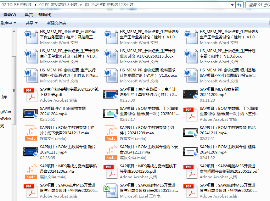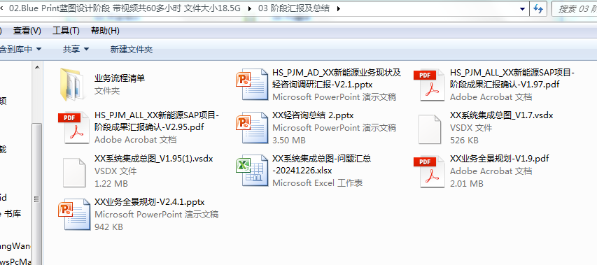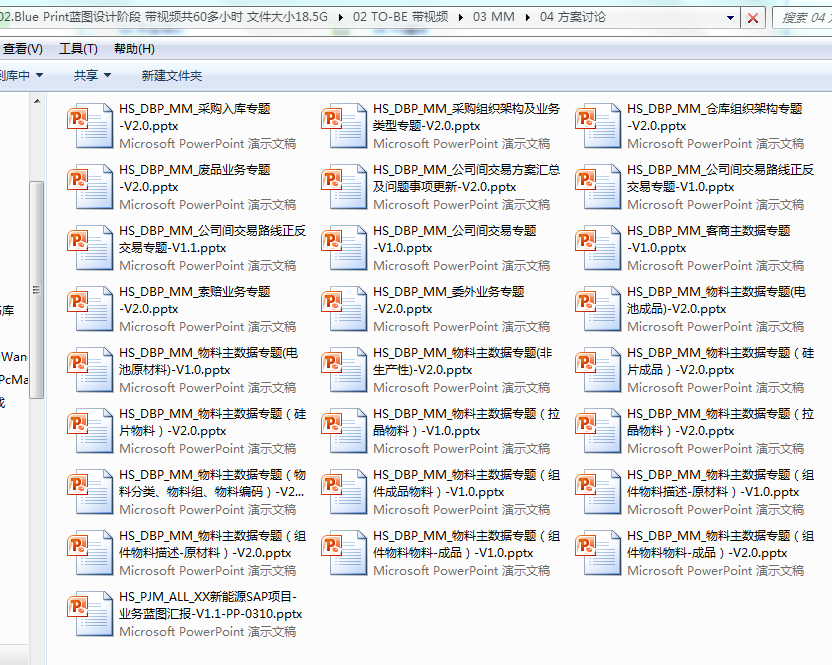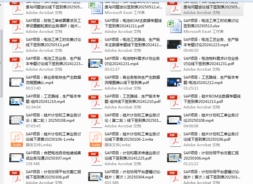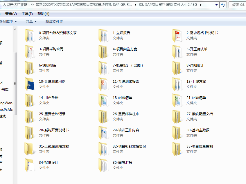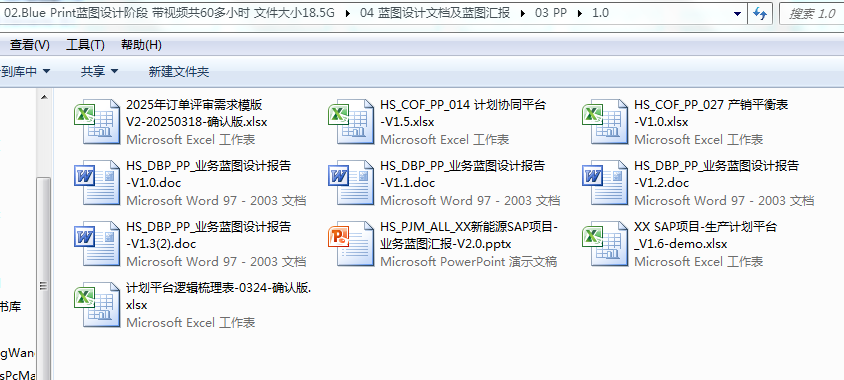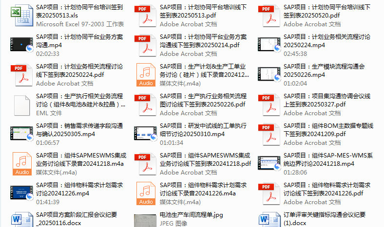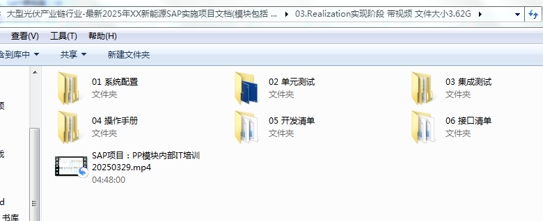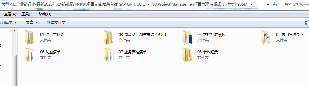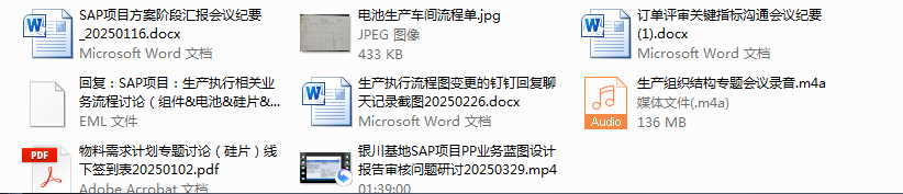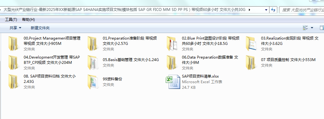 大型光伏产业链行业-最新2025年XX新能源SAP S/4HANA实施项目文档(模块包括 SAP FICO MM SD PP PS) 带视频时长60多小时 文件大小共30G内容截图如下: