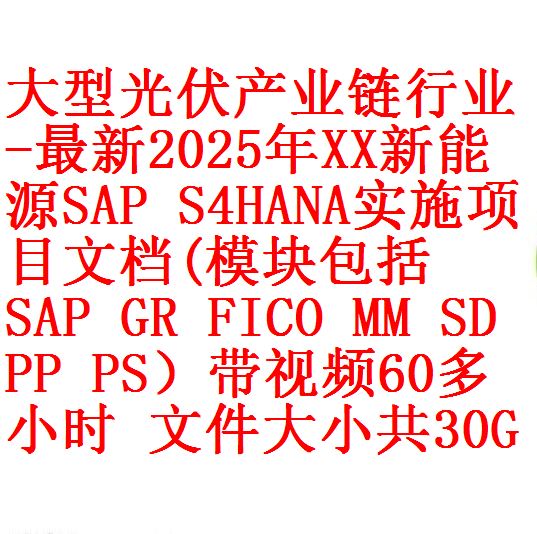 大型光伏产业链行业-最新2025年XX新能源SAP S/4HANA实施项目文档(模块包括 SAP FICO MM SD PP PS) 带视频时长60多小时 文件大小共30G。
