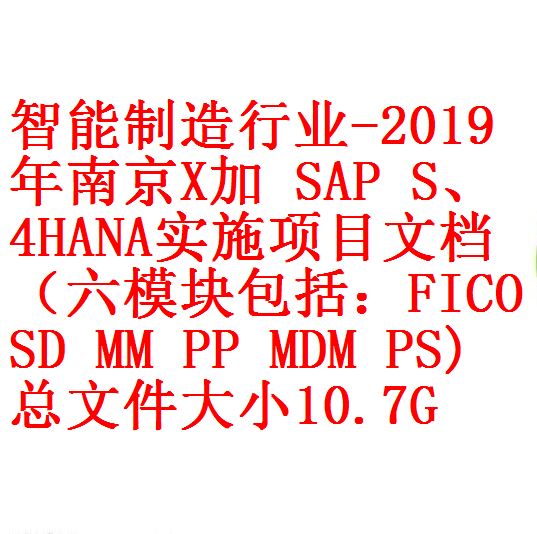 智能制造行业-2019年南京X加 SAP S/4HANA实施项目文档(6模块包括:FICO SD MM PP MDM PS) 总文件大小10.7G