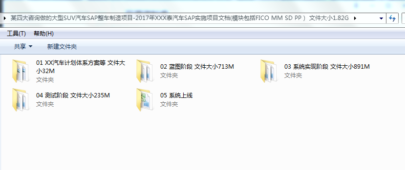 某四大咨询做的大型SUV汽车SAP整车制造项目-2017年XXX泰汽车SAP实施项目文档(模块包括SAP FICO MM SD PP) 文件大小1.82G。