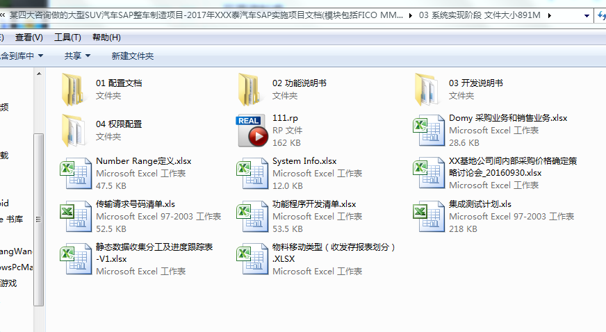 某四大咨询做的大型SUV汽车SAP整车制造项目-2017年XXX泰汽车SAP实施项目文档(模块包括SAP FICO MM SD PP) 文件大小1.82G