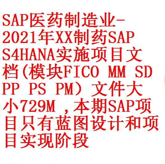 SAP医药制造业- 2021年XX制药SAP S4HANA实施项目文档(模块SAP FICO MM SD PP PS PM)文件大小729M,本期SAP项目只有蓝图设计和项目实现阶段.