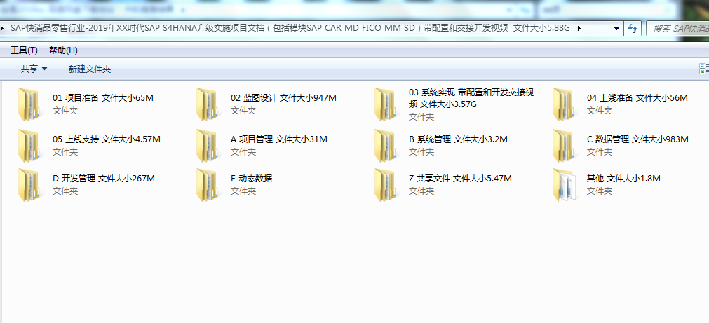 SAP快消品零售行业-2019年XX时代SAP S/4HANA升级实施项目文档(包括模块SAP CAR MD FICO MM SD)带配置和交接开发视频  文件大小5.88G内容截图如