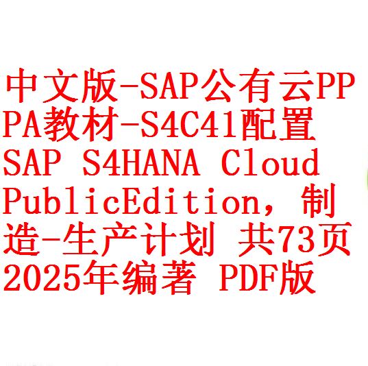 中文版-SAP公有云PP PA教材-S4C41配置 SAP S4HANA Cloud PublicEdition,制造-生产计划 共73页 2025年编著 PDF版