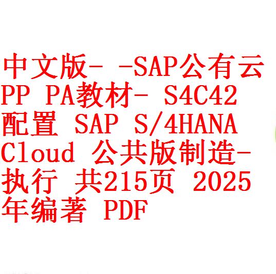 中文版- -SAP公有云PP PA教材- S4C42 配置 SAP S4HANA Cloud 公共版制造-执行 共215页 2025年编著 PDF