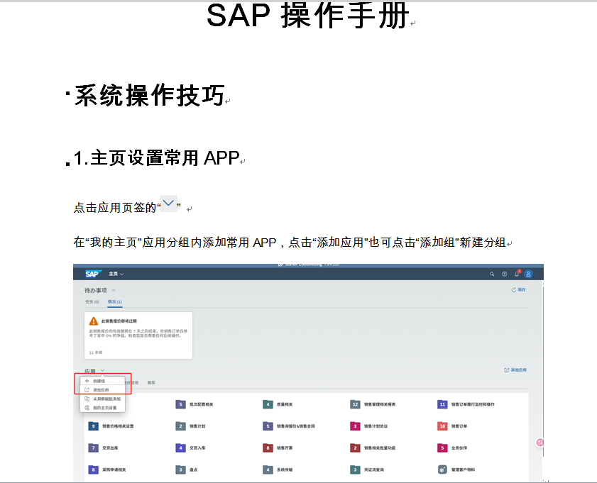 项目组做的公有云ES SAP 后勤SD MM PP 业务操作文档,除了SAP公有云PP有带目录,另外mm和SD那本都没有目录,有操作手册截图试看。