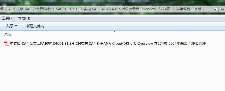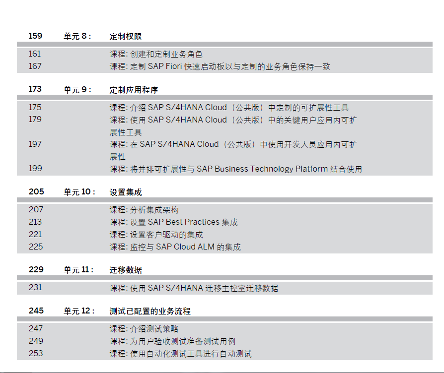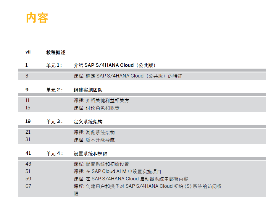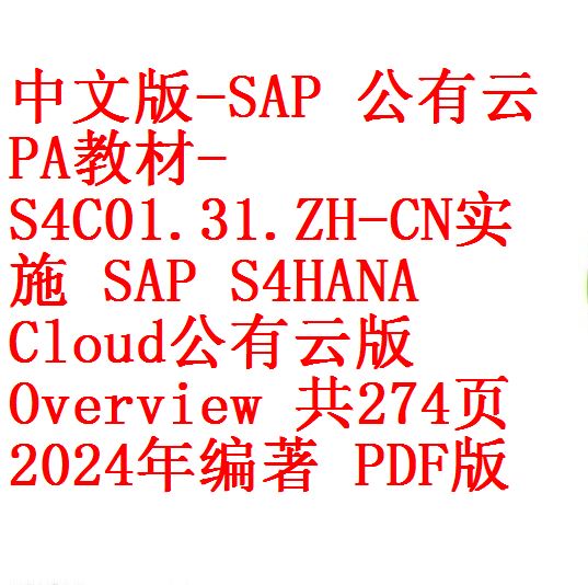 中文版-SAP 公有云PA教材-S4C01.31.ZH-CN实施 SAP S4HANA Cloud公有云版 Overview 共274页 2024年编著 PDF版目录截图如下: