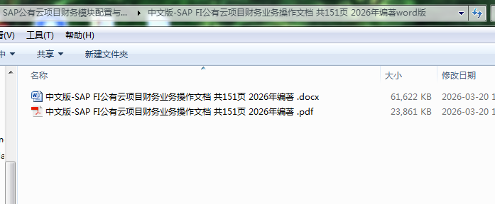 中文版-SAP FI公有云项目财务业务操作文档 共151页 2026年编著word版目录内容截图: