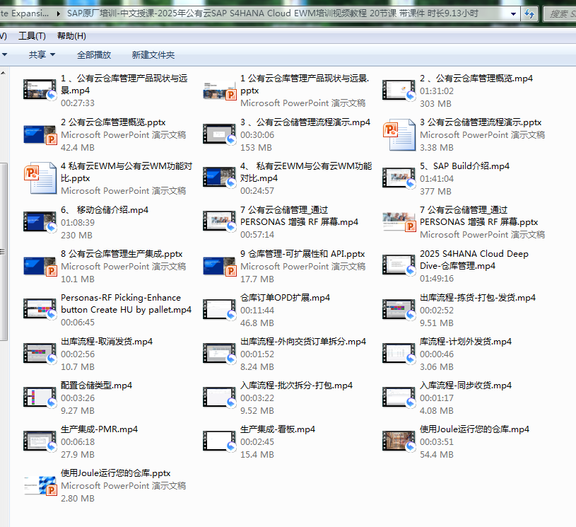 SAP官方原厂培训-中文授课-2025年公有云SAP S/4HANA Cloud EWM培训视频教程 20节课 带课件 时长9.13小时,文件大小2.09G